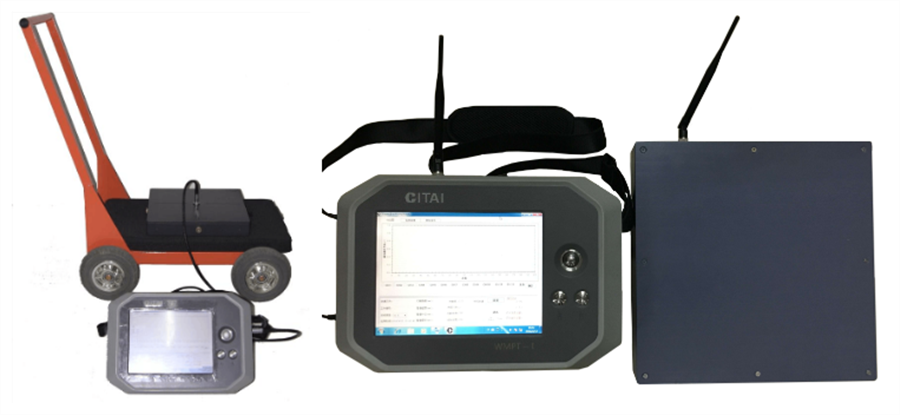 埋地管道非开挖检测系统应用于埋地管道的非开挖检测,检测过程选择外检测方式,即采用高精度传感器在地面沿管道上方行走进行扫查,由于地磁场环境下管道缺陷处的磁导率和母材的磁导率的不同,通过采集管道表面的磁感应强度可实现对整体埋地管道的腐蚀及内部缺陷的检测。检测系统分为有线传输式检测系统和无线传输式检测系统。