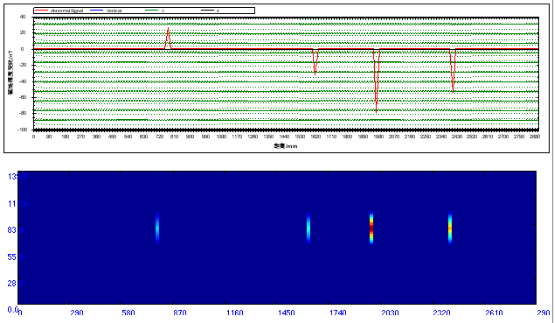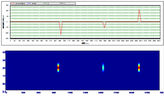 检测现场为中石油遂宁野外管线,本次检测管道长度共140m,管径219mm,该管线敷设于地下,埋藏深度为1.5m。检测结果显示,被检区域存在多处信号异常。与管线的负责方沟通后得知,该段管线为使用年限较长的输气管线,并在几年前已经废弃,由于使用年限较长,导致管壁的内壁和外壁均存在着多处的壁厚腐蚀减薄,与检测结果相符。