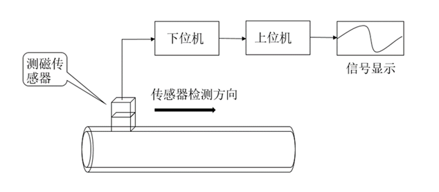 车轴渗碳层厚度检测系统平台主要包括待检试件、TMR测磁传感器部分与上位机三大部分,其检测平台如图3所示,其上位机与下位机传感器共同构成了本文自主研发的车轴渗碳层厚度弱磁检测仪。