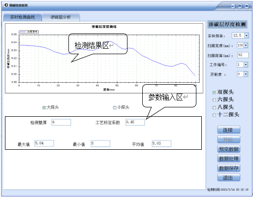 随着现代汽车整车技术的迅速发展,车半轴作为连接差速器与驱动轮传递扭矩的重要桥梁,得益于车轴其表面高硬度心部强韧性等优异性能,使得成为汽车架构系统组成至关重要的关键零部件之一。车轴通过渗碳、淬火等热处理工艺后最终在其表面形成一层有效硬化层。如果渗碳层厚度过深则使得渗碳件的心部硬度高,减低了渗碳件的抗冲击韧性,使得渗碳件容易发生断裂,厚度过浅则达不到热处理的目的。因此渗碳层厚度检测是热处理工艺评定车轴质量的重要值指标,是业界一直关注的问题。然而现阶段通用的金相检测属于有损检测,其余无损检测技术则在精度上无法达到工程应用需求且操作复杂。