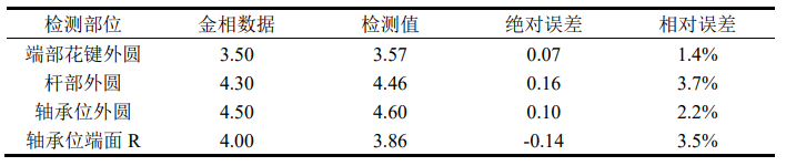 通过对三组试件四个关键检测部位的重复检测试验,针对磁感应强度信号幅值比与渗碳层厚度值的相关性进行多次分析,并与实际试件检测部位金相数据进行相对误差分析,验证了车轴渗碳层厚度弱磁检测的可行性,并最终通过对随机抽取整根车半轴试件多部位首先进行弱磁现场检测,后对现场检测部位进行切割金相试验,通过现场弱磁检测渗碳层厚度值与金相处理深度值作对比,分析比较各部位的相对误差值,最终验证该车轴渗碳层厚度检测系统的实用性与稳定性。