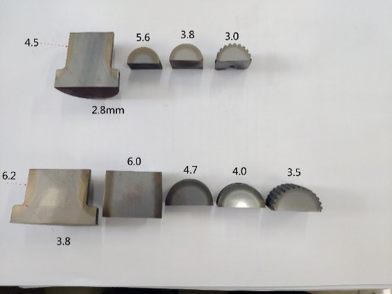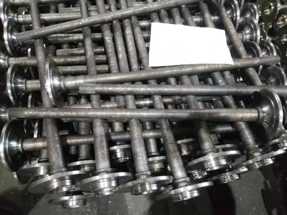 为了进一步验证该弱磁检测系统的实用性,我们将采取从工厂车间成品摆放处如图9随机抽取两根完整试件来进行抽检。我们以上述试验检测结果的各部位磁弹系数为基准进行此次试验的固定标定参数,此外由上述试验的随机试件先做金相切割有损试验获取实际渗碳层厚度参数再进行弱磁检测顺序变为先对随机完整试件进行弱磁无损检测在检测完成后对检测部位由厂家进行金相数据检测得顺序,最后与弱磁检测渗碳层厚度值进行比较进行相对误差计算并分析其意义。