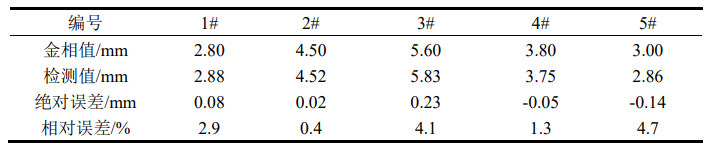 本文设计的车轴渗碳层弱磁检测系统针对目前其他检测技术的不足主要创新点在于提出一种全新检测理论的检测技术,利用测磁传感器无需外界激励以及耦合直接对渗碳层表面磁场强度信号进行检测操作简单,在传感器方面受相机成像测距启发,采用上下阵列的传感器分布方式,通过构建上下阵列传感器幅值比与渗碳层厚度的数学模型,实现对检测点渗碳层厚度的精准测量,且检测精度实现相对误差小于5%,完全满足工厂实际工作检测精度需求。