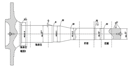 (a) 端部花键外圆 (b) 杆部外圆 (c) 轴承位外圆与端面R角