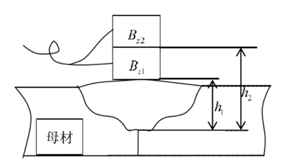 在焊缝的熔合线处,晶体以柱状晶的形态不断长大,其长大的方向与熔池的散热方向一致,焊缝熔池结晶过程中,晶体沿焊缝熔合线不断长大。熔合线一侧是母材,另一侧是熔池金属结晶产生的柱状体,两种不同材料具有不同的磁导率。焊缝熔合线处存在材料磁导率的突变,导致焊缝出现磁异常。通过设计特定的磁传感器通过对磁异常的监督检测,以此来达到对熔合线的定位即对焊缝的深度测量。