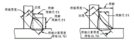 图3. 凸形角焊缝示意图 图4. 凹形角焊缝示意图