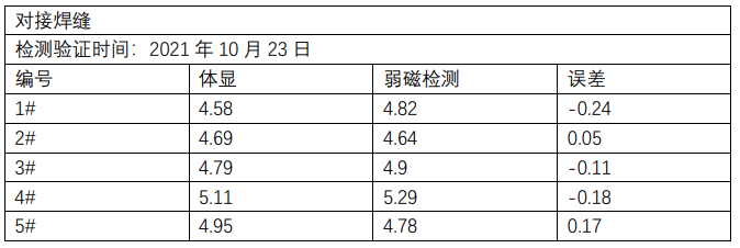 在对整车对接焊缝质量检测过程中,焊接板材厚度对弱磁焊缝质量检测仪测量结果无影响,但焊板的组成成分不同会对试验结果存在一定影响。