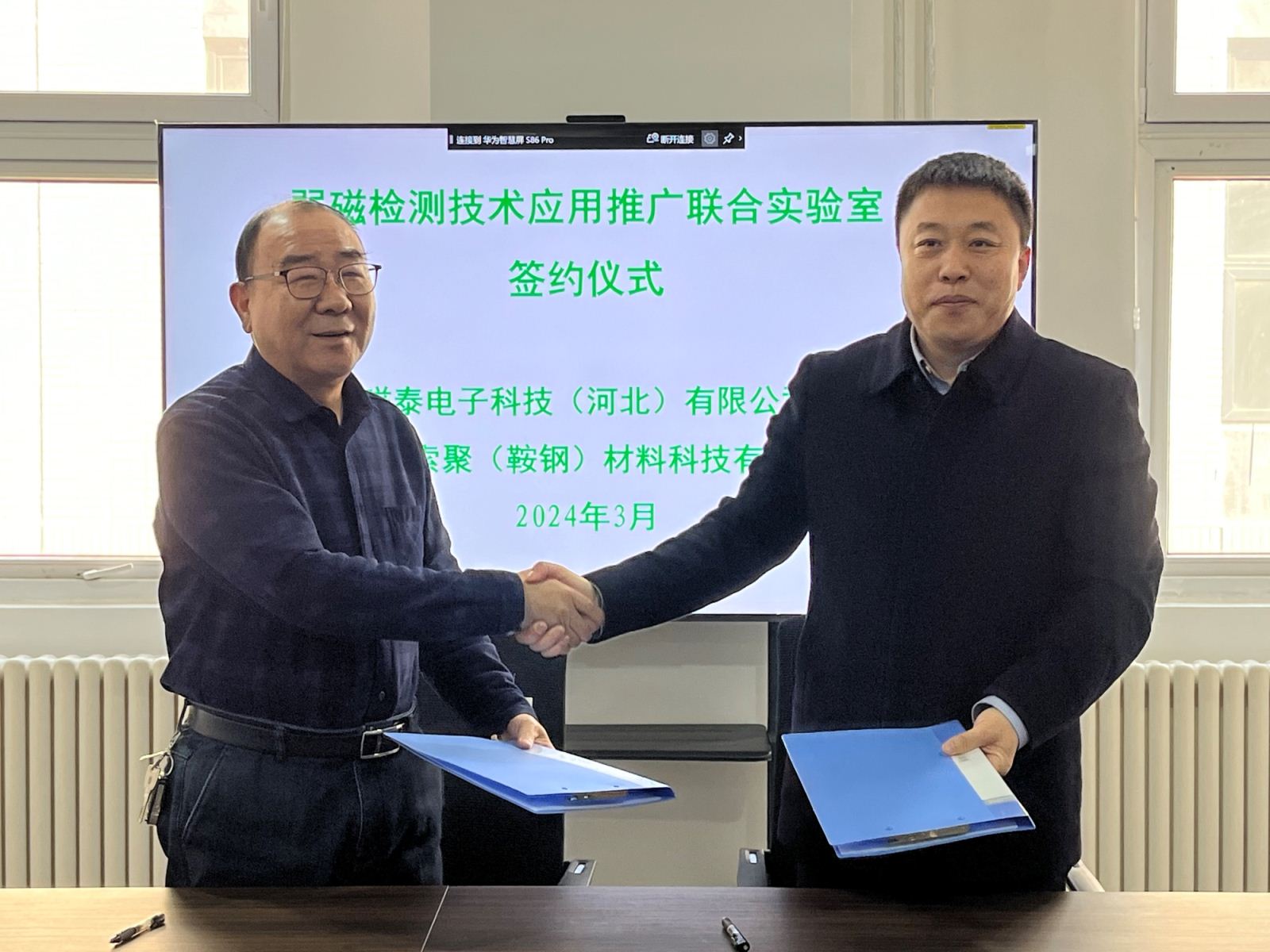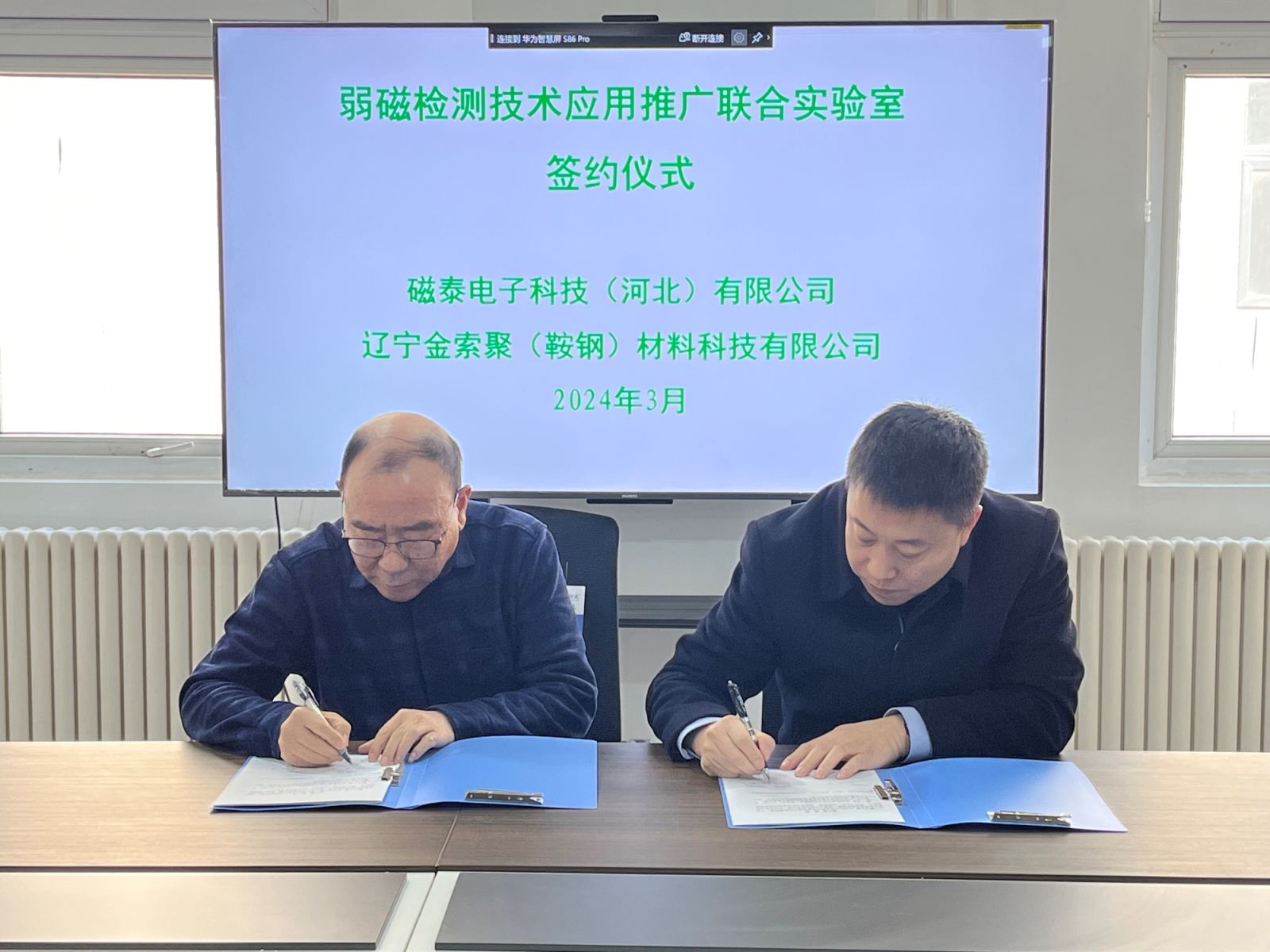 2024年3月6日上午,辽宁金索聚(鞍钢)材料科技有限公司与我司举行弱磁检测技术应用推广实验室签约仪式。