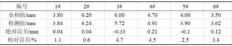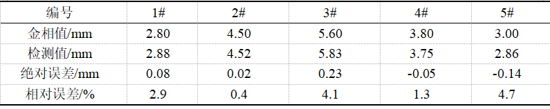通过此次现场随机抽检试验结果分析可知,现场检测结果精度误差整体小于5%,试验结果整体趋于稳定与之前试验检测精度高度相似,此外弱磁淬硬层厚度检测仪检测深度值与厂家金相切割数据值整体贴合度高。